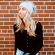 Thick warm rib knit Angora/Wool blend beanie with a large raccoon fur or faux fur pompom at crown.